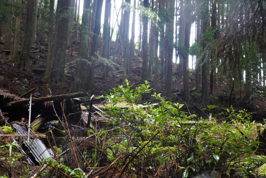 三越峠の先は道が細く、細心の注意を払って峠を下ります。途中には古い集落跡もあり、興味深かったです。
