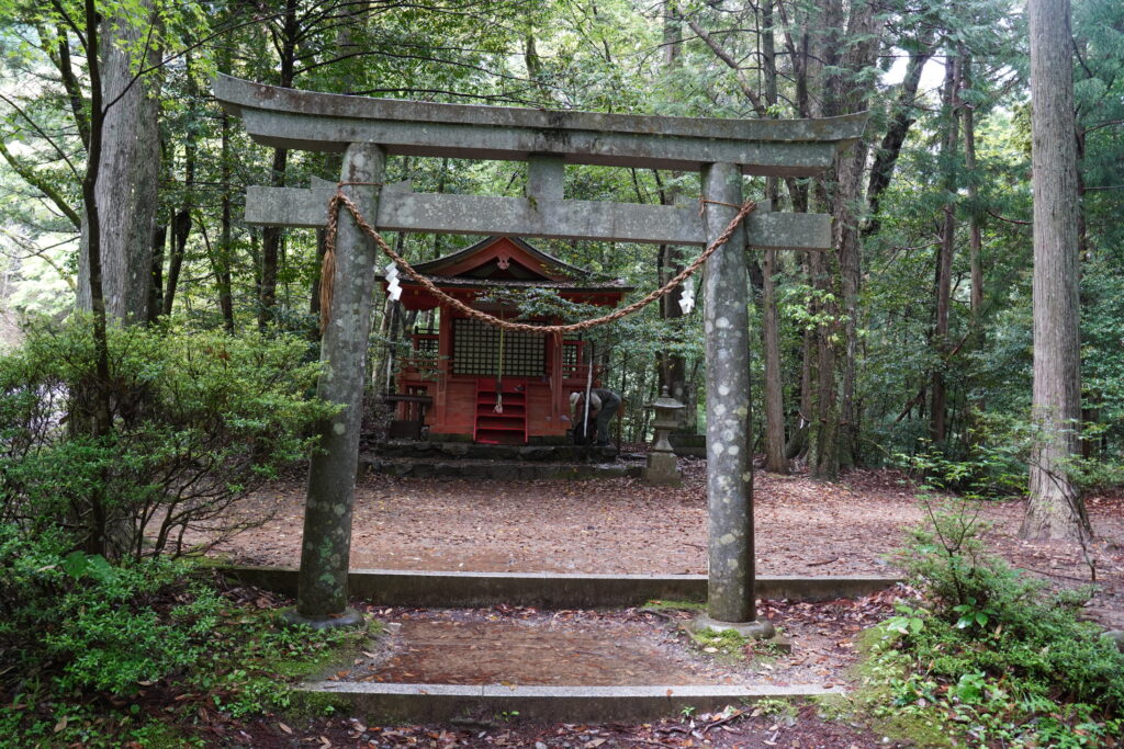 発心門王子から先は、熊野本宮の神域とされる場所。到着すると朝から降っていた雨が上がり、一瞬晴れ間が見えました。まるで熊野の神様が迎えてくれたかのようで、頑張りが報われました。