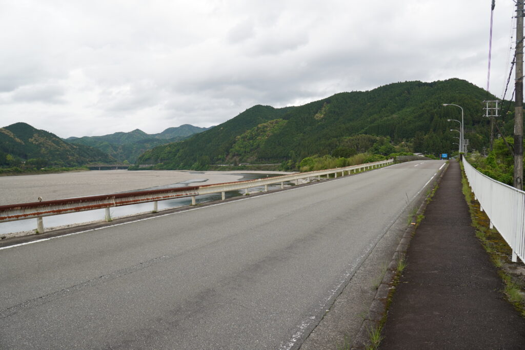 熊野本宮大社から先はひたすらロード歩き。国道なので車通りも多いですが、気を付けて進みます。