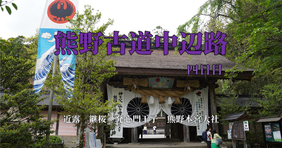 4日目は近露をスタート、継桜王子の後に発心門王子を通り、熊野本宮大社を参拝、そして川湯温泉までの29.9kmとなります。