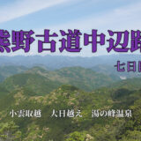 - 熊野那智大社から小口までの間、中辺路最高地点の越前峠(標高870m)を含め複数の高い峠を越えていく